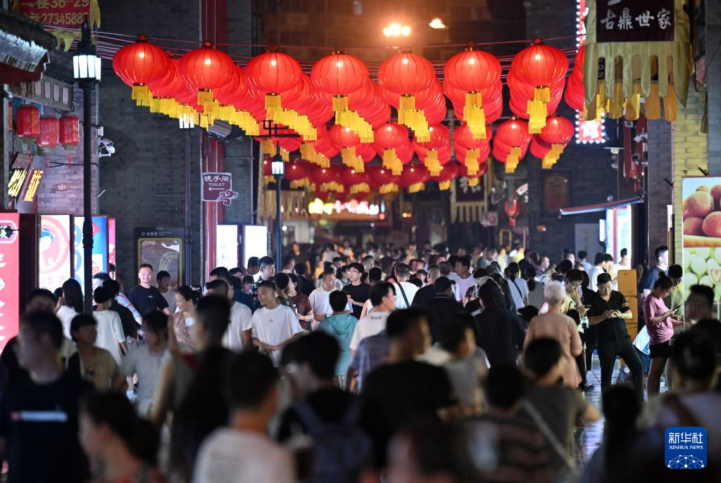 8月3日,游客在天津的旧文化街上玩得开心。在夏季,天津旧文化街的表演区域的夜间游览继续是“热门”,商人引入了诸如延迟业务的措施,组织现场行动以吸引游客并释放夏季的经济活力。照片:Zhao Zishuo的照片,新华社通讯社记者
